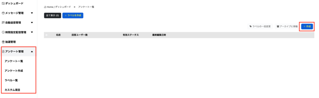 ⑤メッセージ管理で、アンケートを送信するメッセージを作成します。