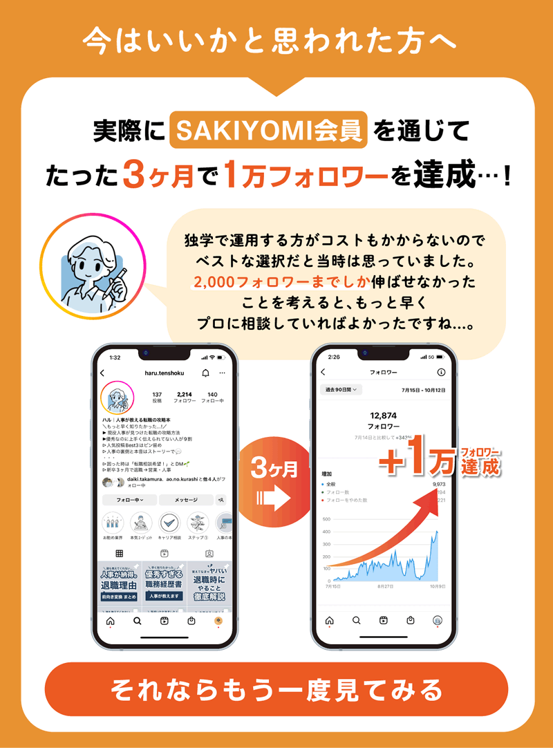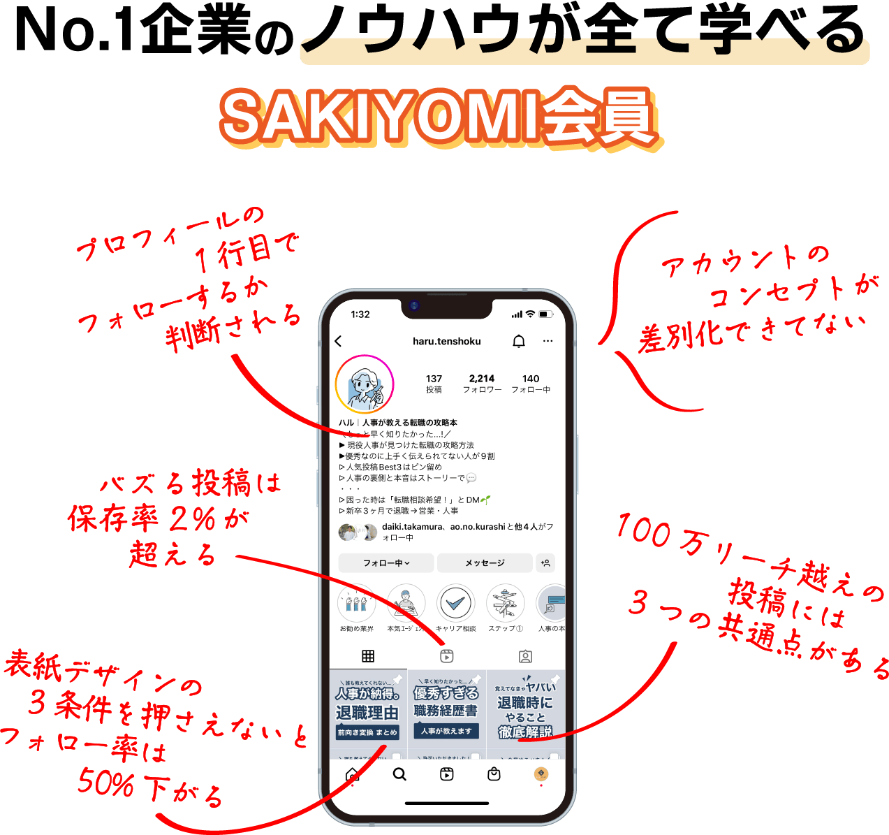 Instagram運用には勝ちパターンが存在 SAKIYOMI SAKIYOMI会員を試してみる※期間に縛りはありません。