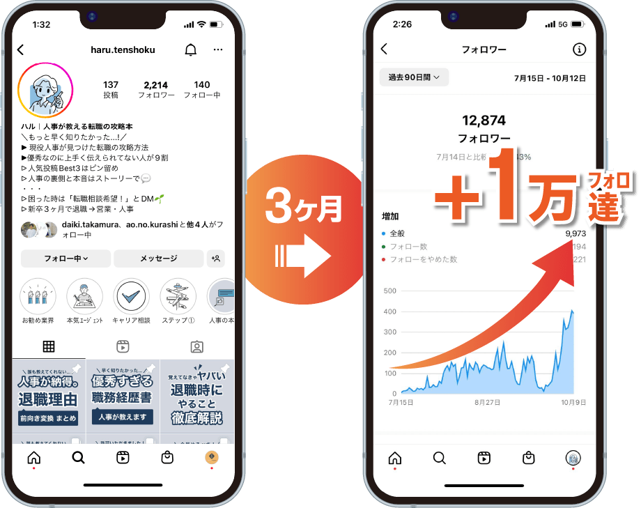 成果が出るまでの時間は個人差がありますが、プロのノウハウは当日から実感していただけるように設計しております。