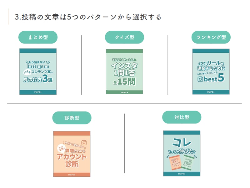 実際に忙しい方向けに、デザインテンプレートやキャッチコピー集、ストーリーズの質問集もご用意しているため、時短しながら運用を続けることができます。